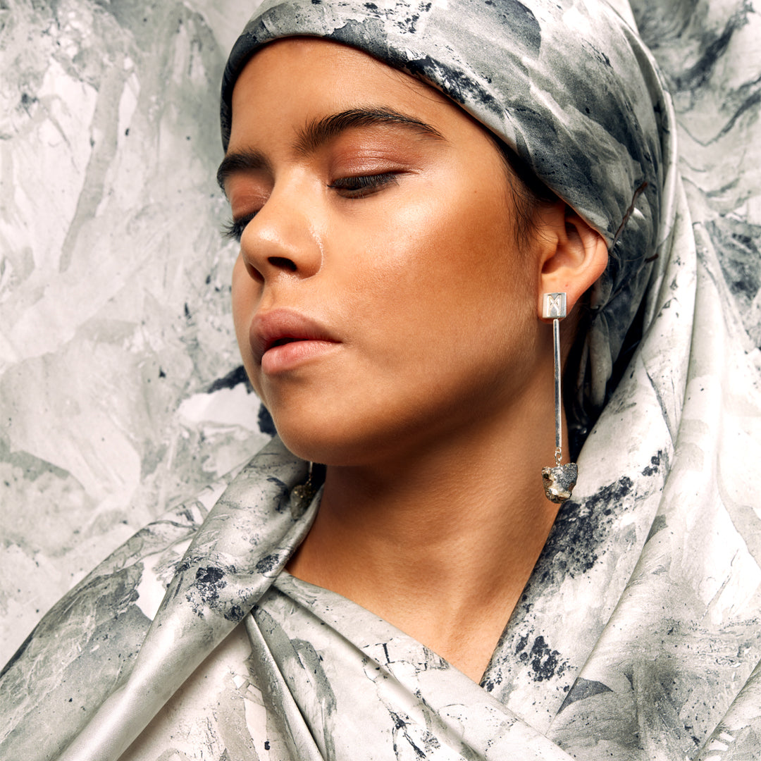 Featuring our iconic stone prints and made with the finest cutting edge technology, our silk scarves perfectly encapsulates our brands vision of mother nature meets runway fashion.