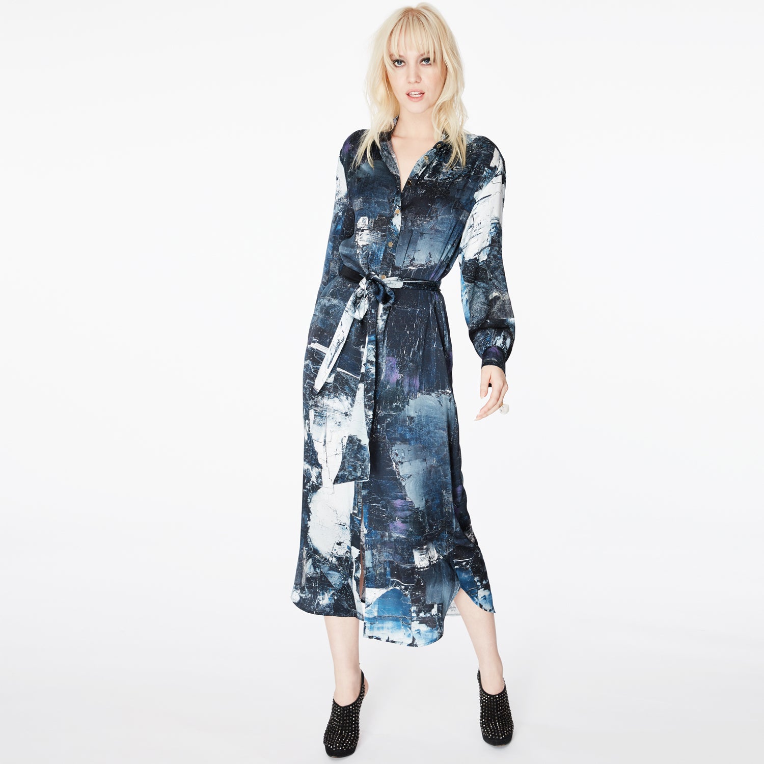 Our perfect solution for when you need to mainline that stone cold glam rock & roll look straight into your wardrobe and take it to ’11’. We might all live in this world, but wear this silk satin shirt dress and you will own the world. Slightly oversized, with a laid back styling, if this was anymore Rock and Roll it would be on the cover of the NME…back when the NME was good.