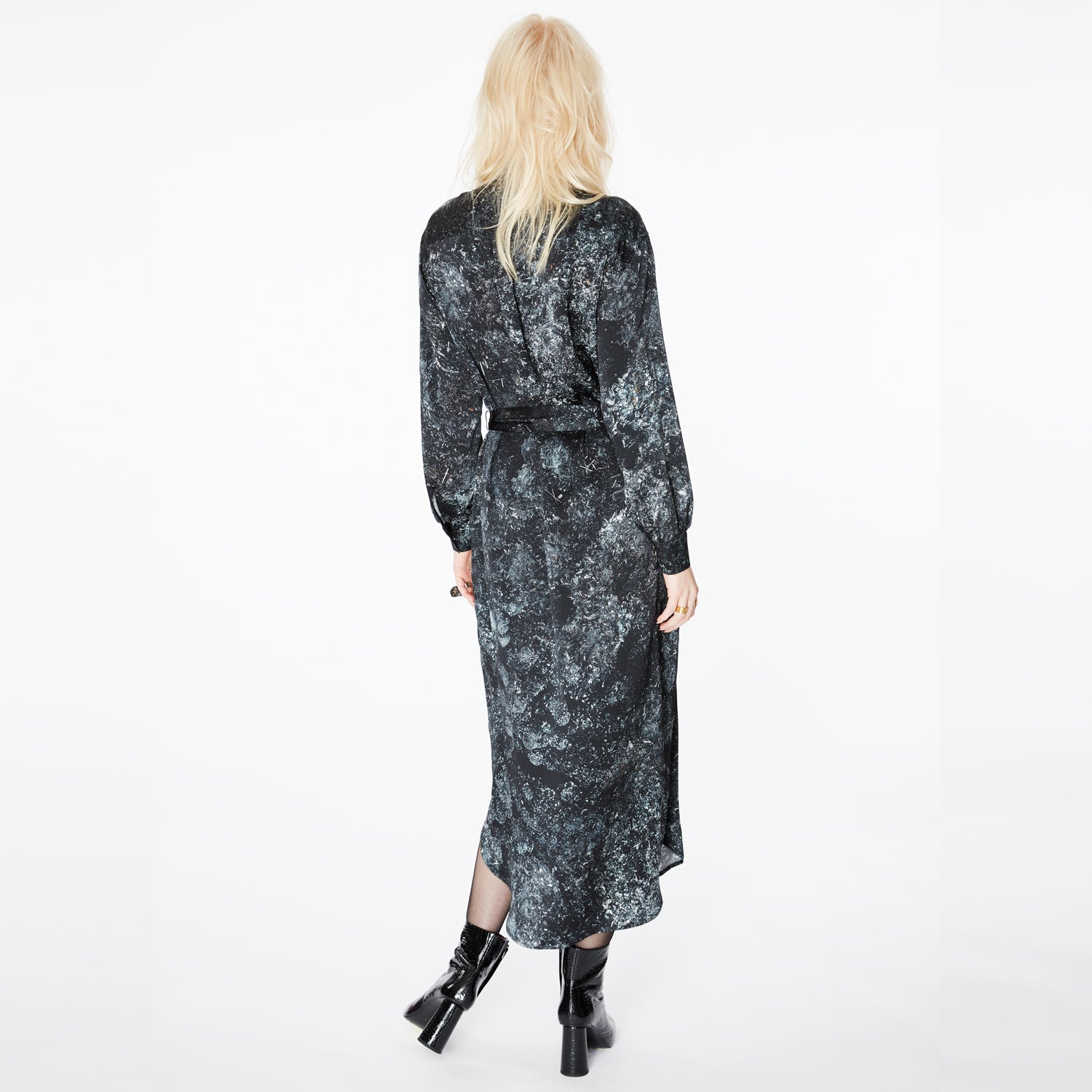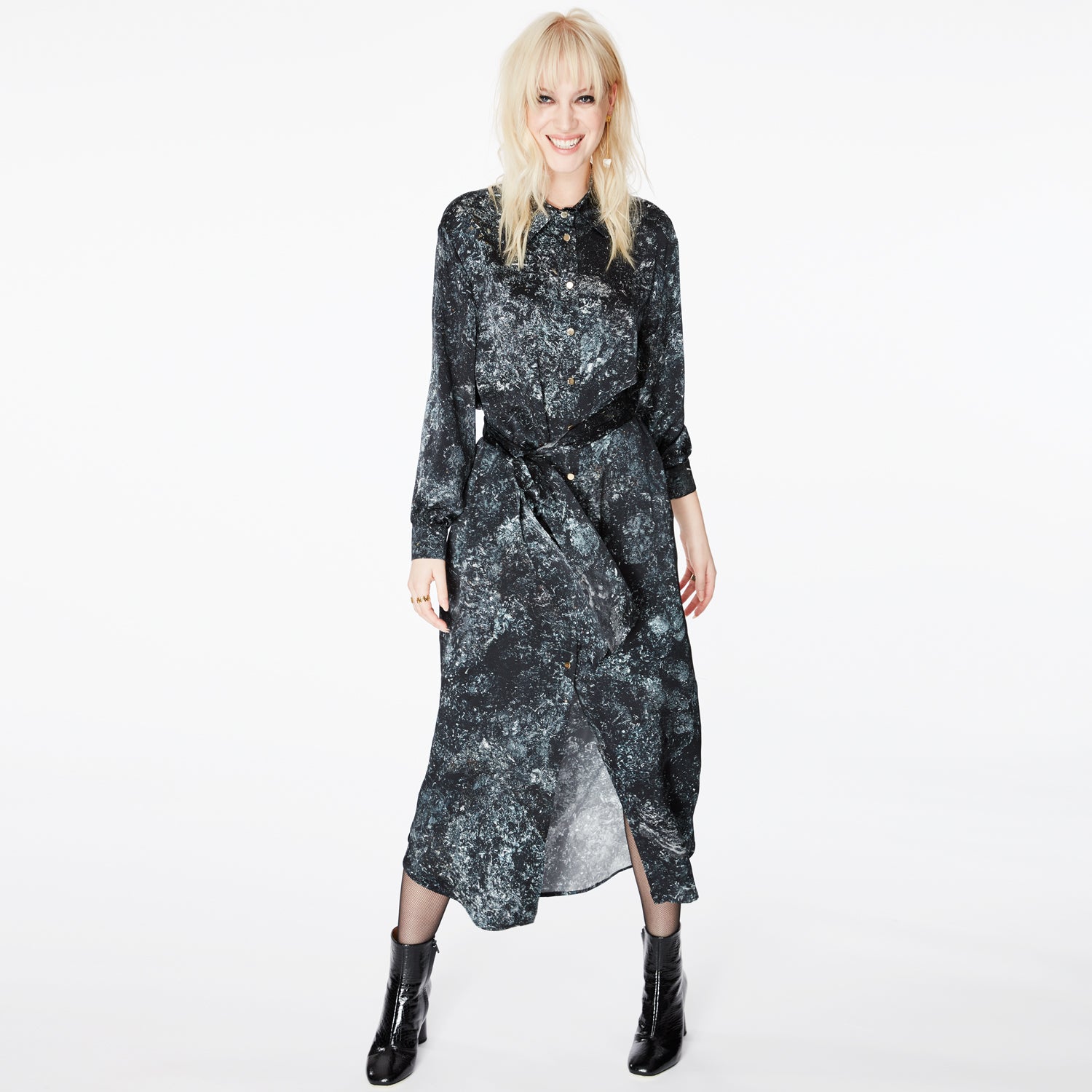 Our perfect solution for when you need to mainline that stone cold glam rock & roll look straight into your wardrobe and take it to ’11’. We might all live in this world, but wear this silk satin shirt dress and you will own the world. Slightly oversized, with a laid back styling, if this was anymore Rock and Roll it would be on the cover of the NME…back when the NME was good.