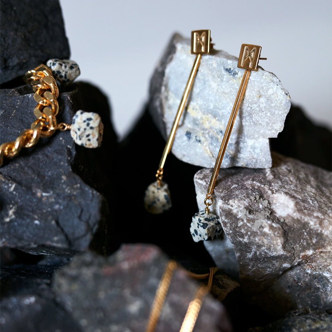 Dalmatian with its speckled pattern - playful yet grounding. The M Convertible Dalmatian Earrings shift from minimal stud to statement drop, giving you the freedom to keep it subtle or go all in.