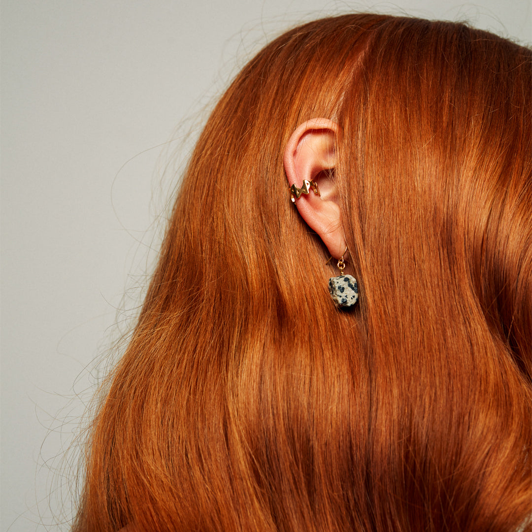 Crisp, graphic, self-assured. Dalmatian jasper brings its signature dot pattern to these free-hanging drop earrings — light movement, strong character. Team with denim or sharpen a clean blazer.
