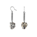 Graphic by nature, modern by design. Dalmatian stone drop earrings bring cream-and-black contrast in a lean silhouette — striking without shouting. Pair with neutral tailoring or a leather jacket and let the pattern do the work.