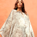 Minimal effort, maximum effect. The Florence Relaxed Kaftan in feathered quartz is cut for freedom and flow, giving you the kind of ease that still feels striking. Its fluid drape and subtle sheen make it a piece you can throw on and instantly look put together — no overthinking required.