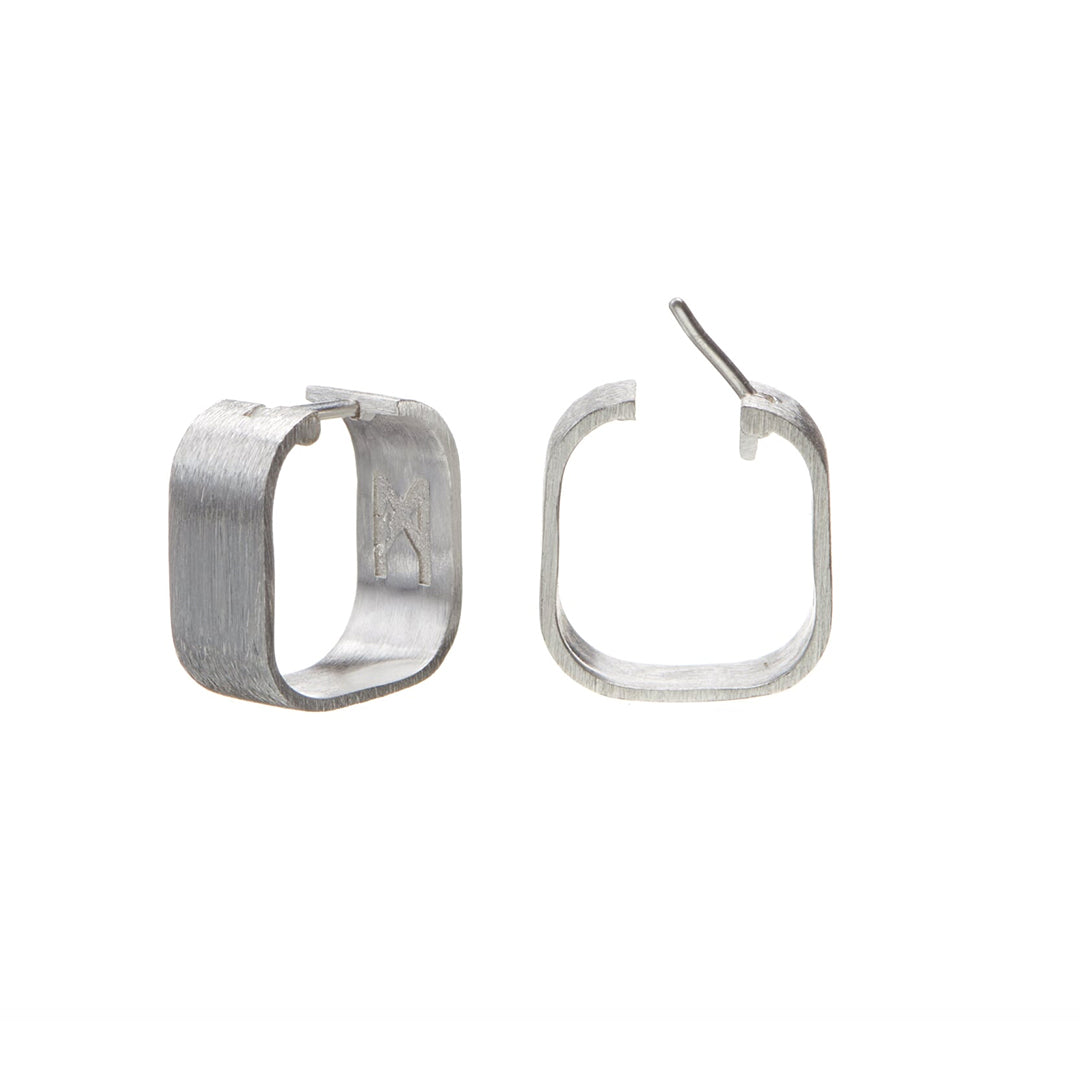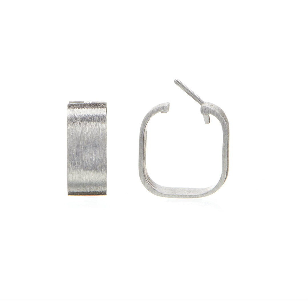Scandinavian to the core: brushed sterling hoops with a cool matte sheen. Shaped from our signature square and eased into a clean curve, they read minimal, feel considered, and work with everything.