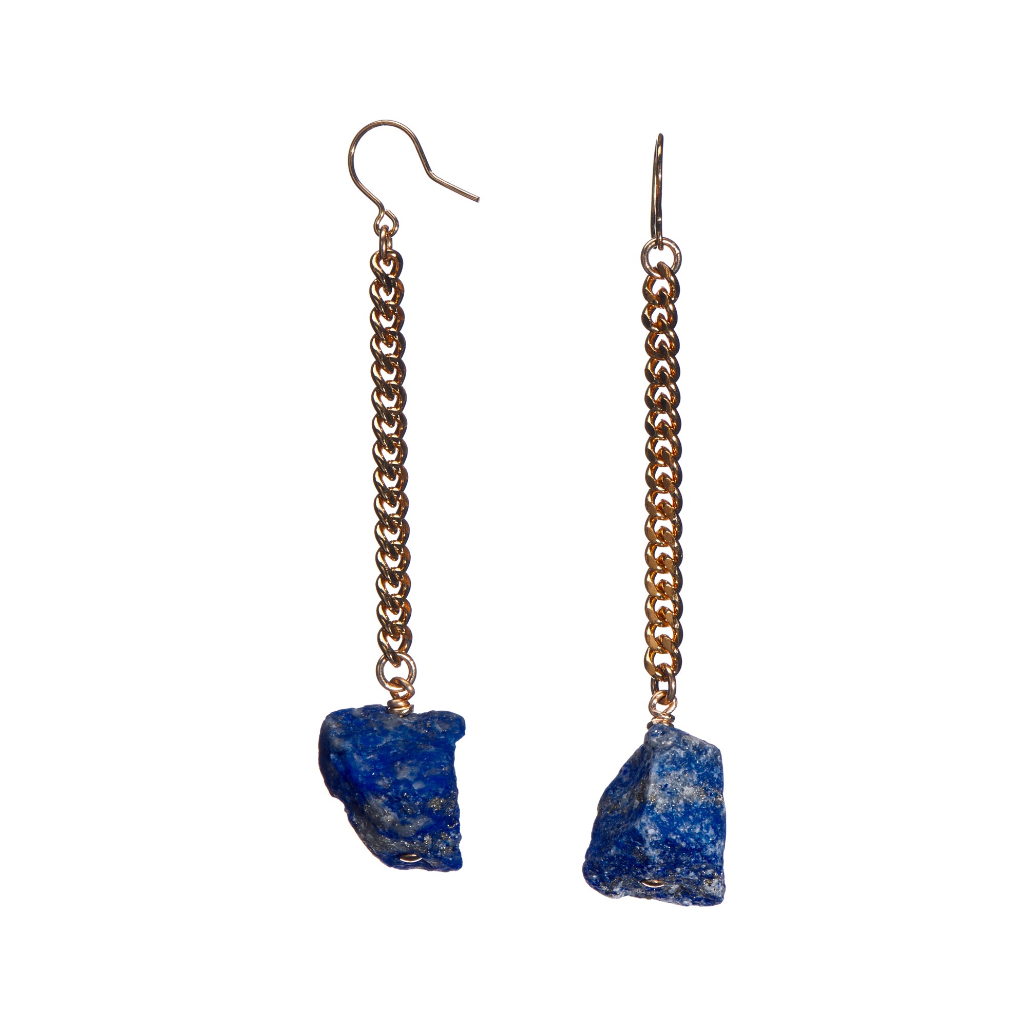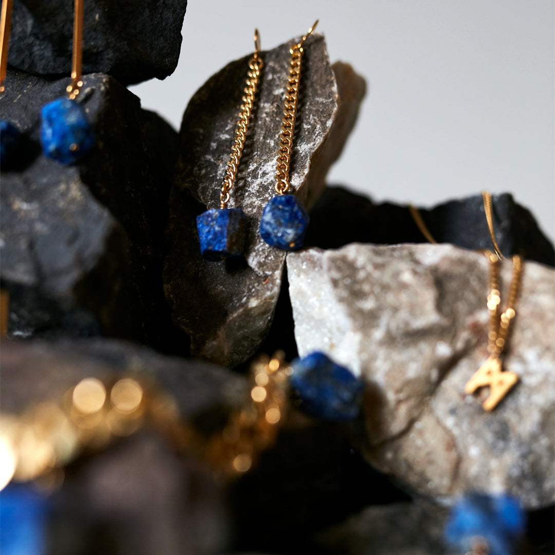 Blue that means it. Lapis lazuli drops bring saturated colour in a sleek vertical — modern, striking, no noise. These lapis lazuli drop earrings turn neutral layers into a moment. Style with a camel coat and the Signature Leather Belt, or a silk shirt left open at the collar.