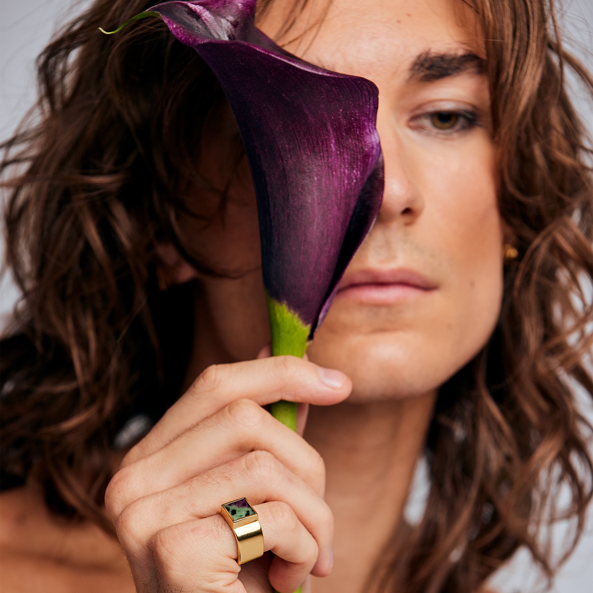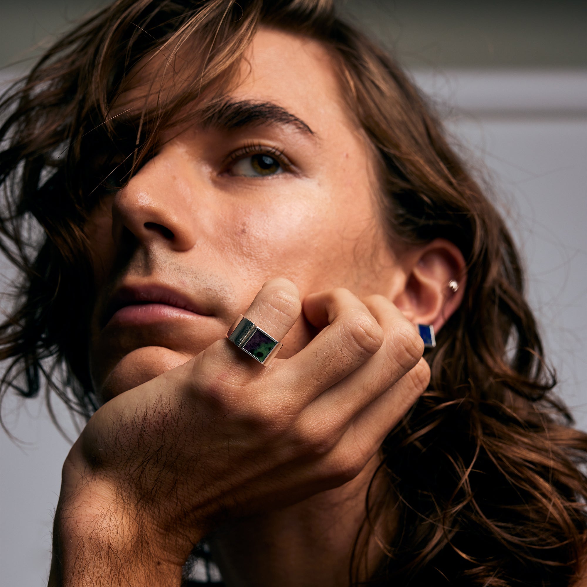 A modernistic composition in simplicity and elegance, this unique piece of Swedish style is a perfect wardrobe companion that will be a visual masterstroke to any outfit you wear. It can be worn as a signet ring or a bold index finger statement.