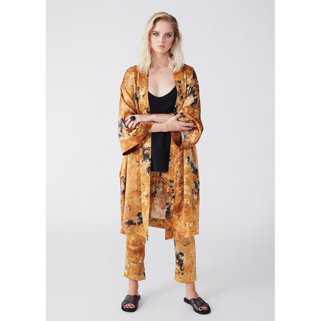 Like the iconic Märta Larsson Kaftan each Kimono is made from lustrous lightweight silk, printed with Märta’s iconic stone imagery. Using cutting edge digital printing, each Kimono delivers images of a superior sharpness of image and incredible rich vivid colour tones. Using inks and materials to ensure the image quality lasts year after year, these Kimonos offer a quality that needs to be seen to be believed.